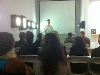 Alex giving pre-screening talk. Photo: Alexis Maxwell.